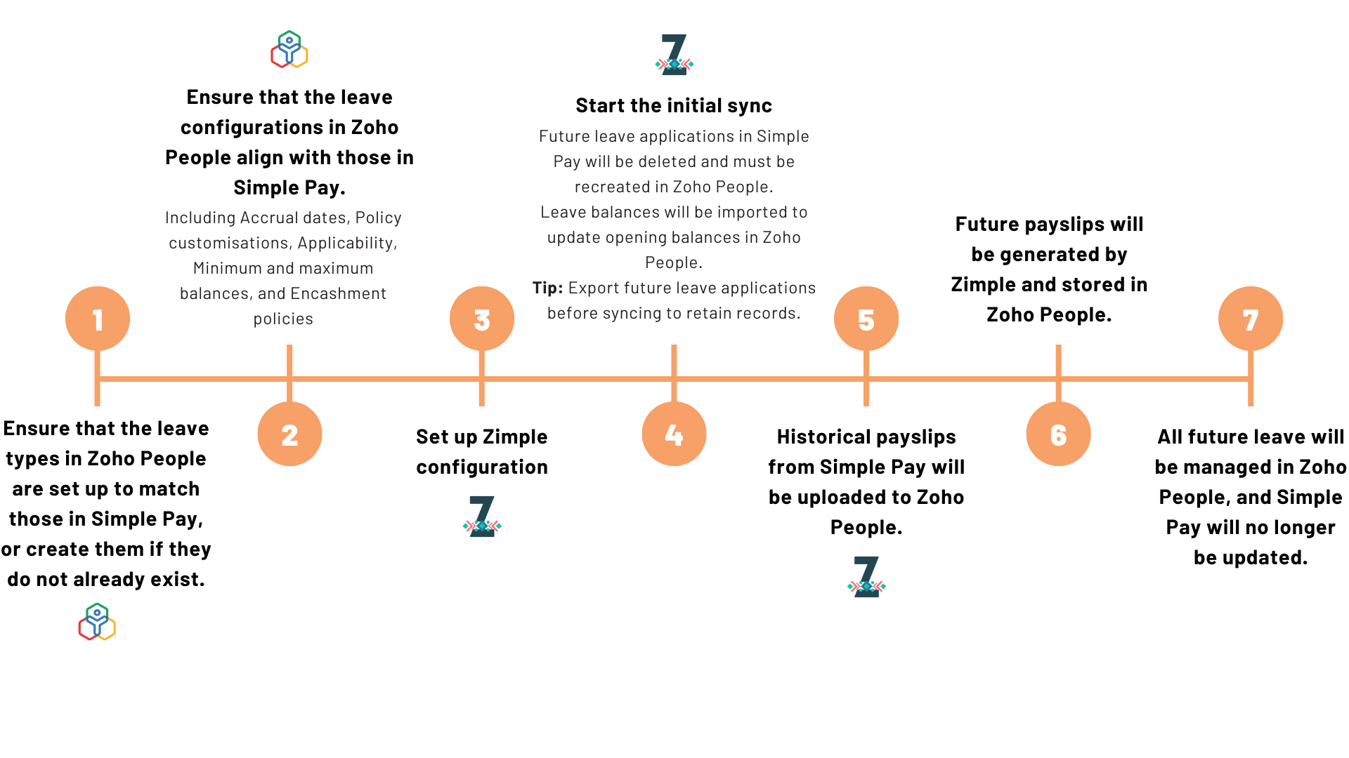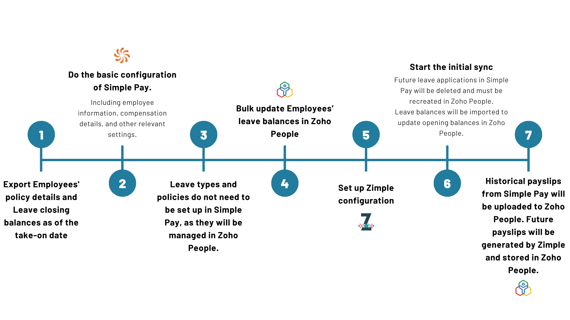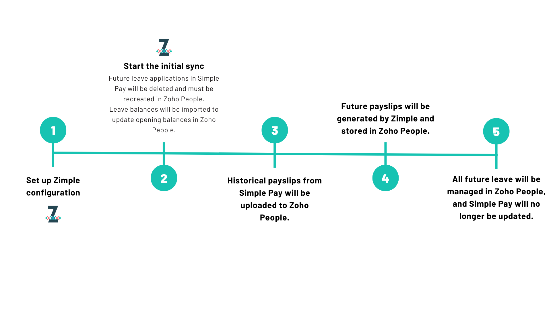 Scenario 1: The client currently uses Simple Pay for Payroll & Leave Management but wants to transition to Zoho People as the primary system for Leave Management.