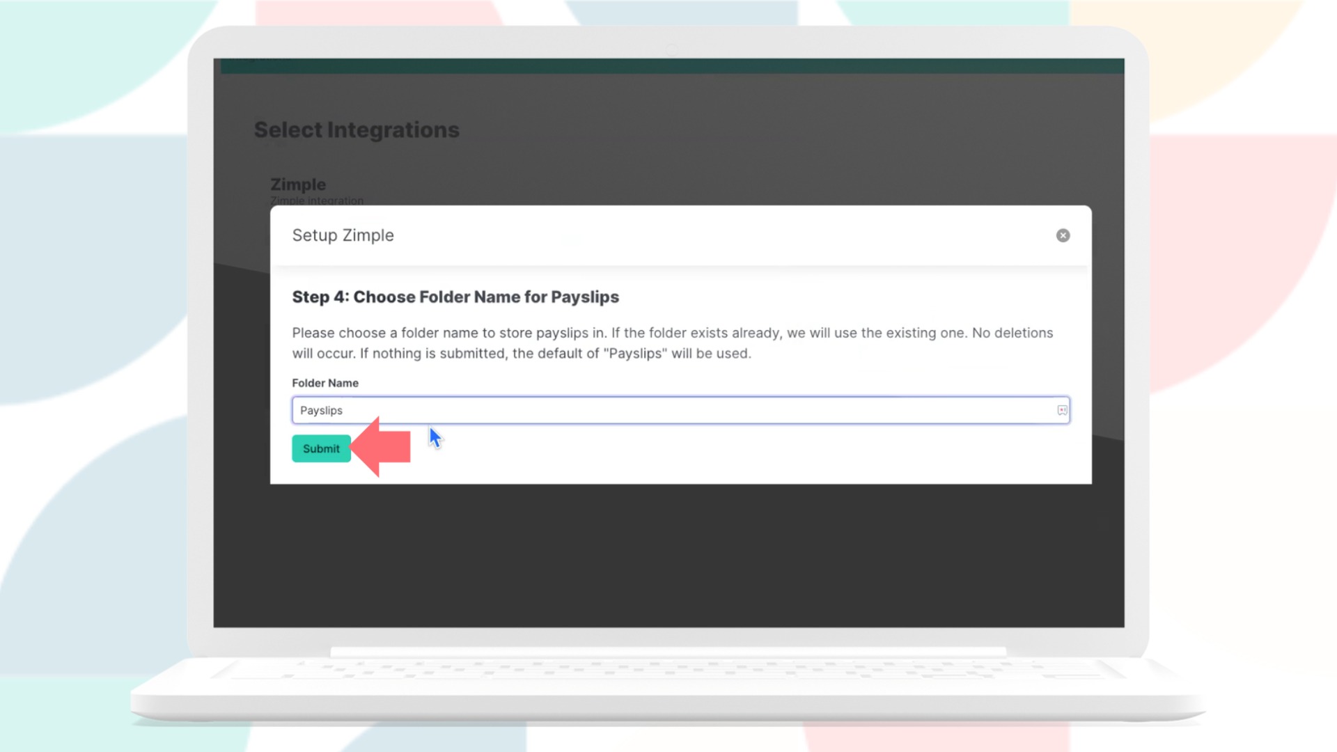 Once you've approved the extension's access, select a folder name for your Simple Pay payslips.